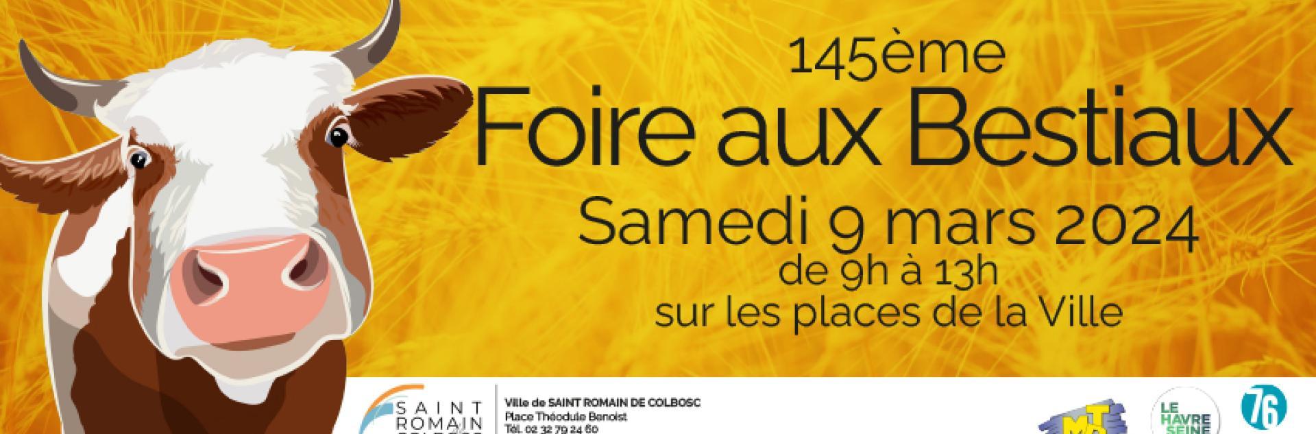 De très nombreux animaux seront présents samedi 9 mars à la 145ème Foire aux Bestiaux de Saint Romain de Colbosc. Le grand public pourra y voir de très près bovins, ovins, caprins mais aussi chevaux, poneys et ânes, certains avec leurs petits, et représentés par différentes races.