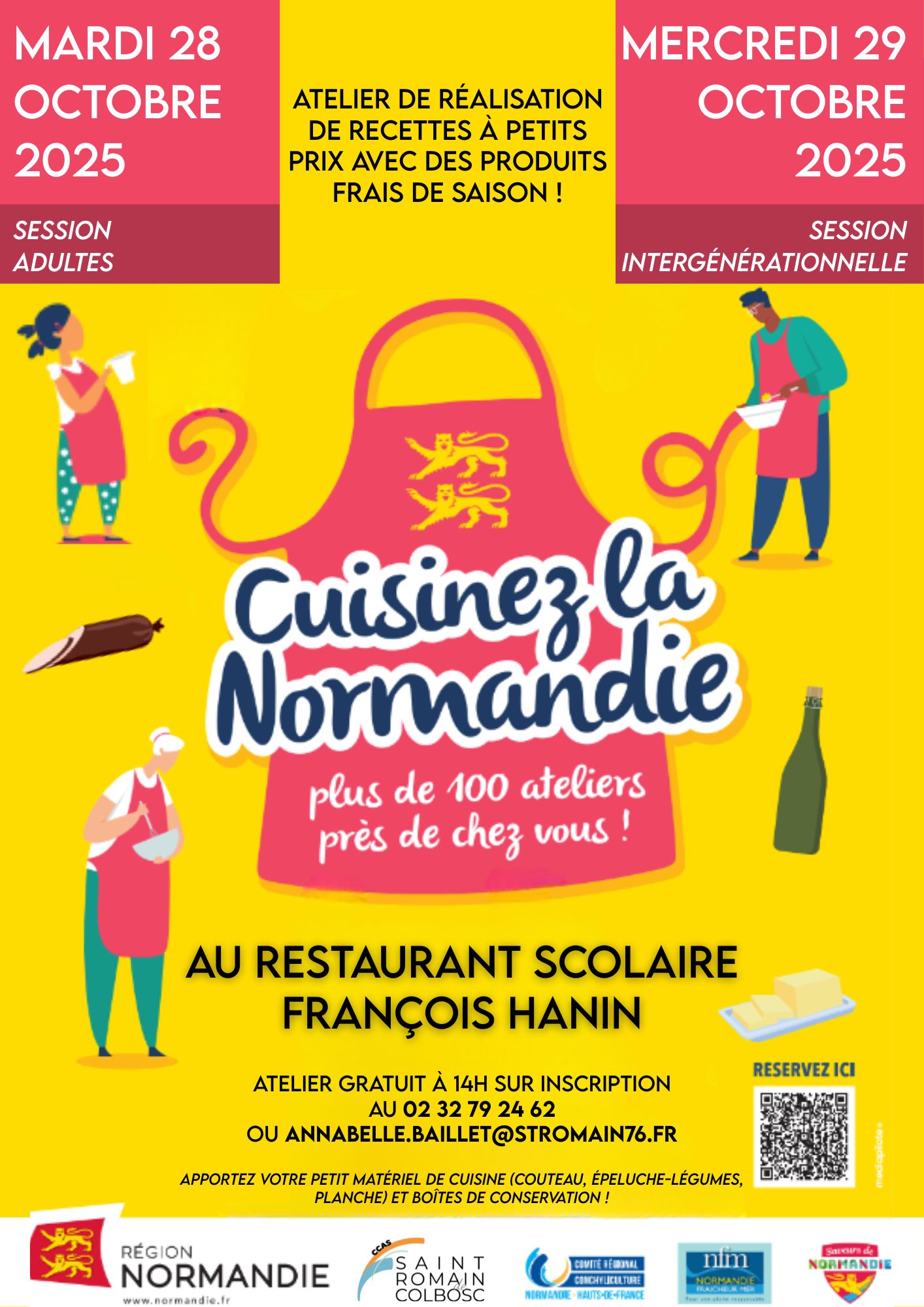 - 🍏 Le Mardi 28 Octobre à 14h (à destination des adultes) : Rejoignez notre atelier cuisine où nous préparerons ensemble un plat savoureux et un dessert gourmand, le tout avec des ingrédients locaux et abordables ! Deux chefs passionnés vous guideront pas à pas dans la création de recettes gourmandes. Idéal pour ceux qui souhaitent améliorer leurs talents en cuisine sans se ruiner. Ambiance conviviale, astuces pratiques et recettes à emporter.