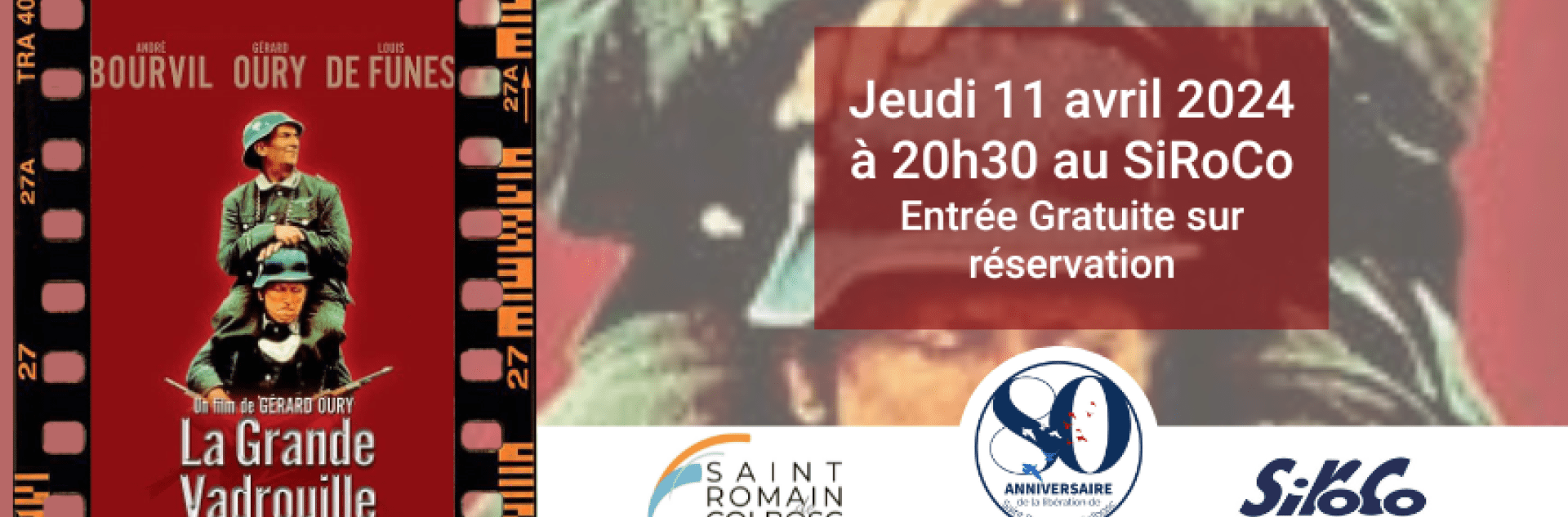 À l’occasion du 80ème anniversaire de la libération de la Ville de Saint Romain de Colbosc, la municipalité a plaisir de vous offrir une séance de cinéma du film « LA GRANDE VADROUILLE » au Siroco le 11 avril prochain à 20h30.