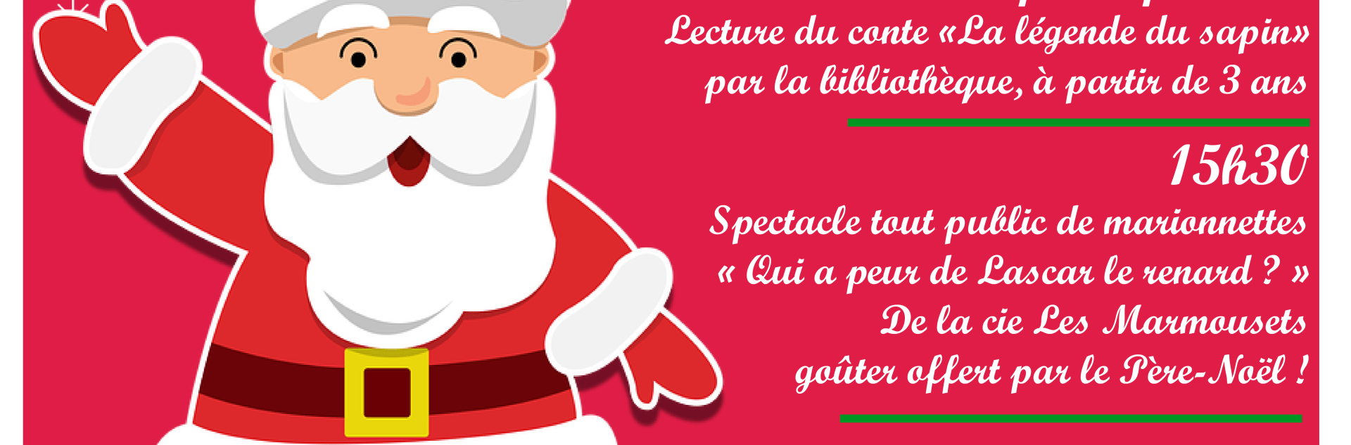 - L’après-midi, à 15h30 , retrouvez le spectacle de marionnettes tout public « Qui a peur de Lascar le renard » de la compagnie le Marmousets suivi du goûter offert par le Père-Noël !